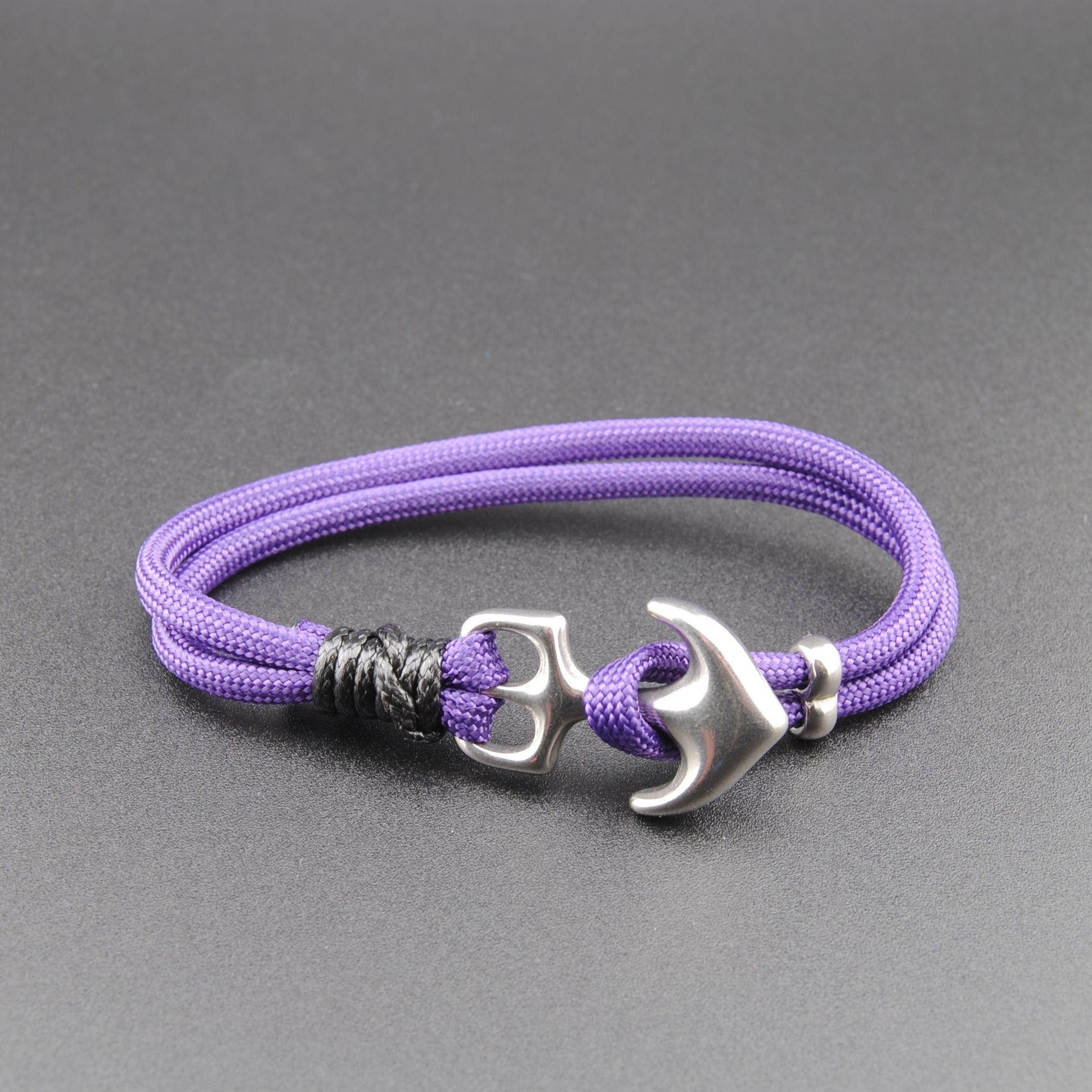 The Black Light - Purple Paracord Double Wrap Bracelet with Stainless Anchor Clasp