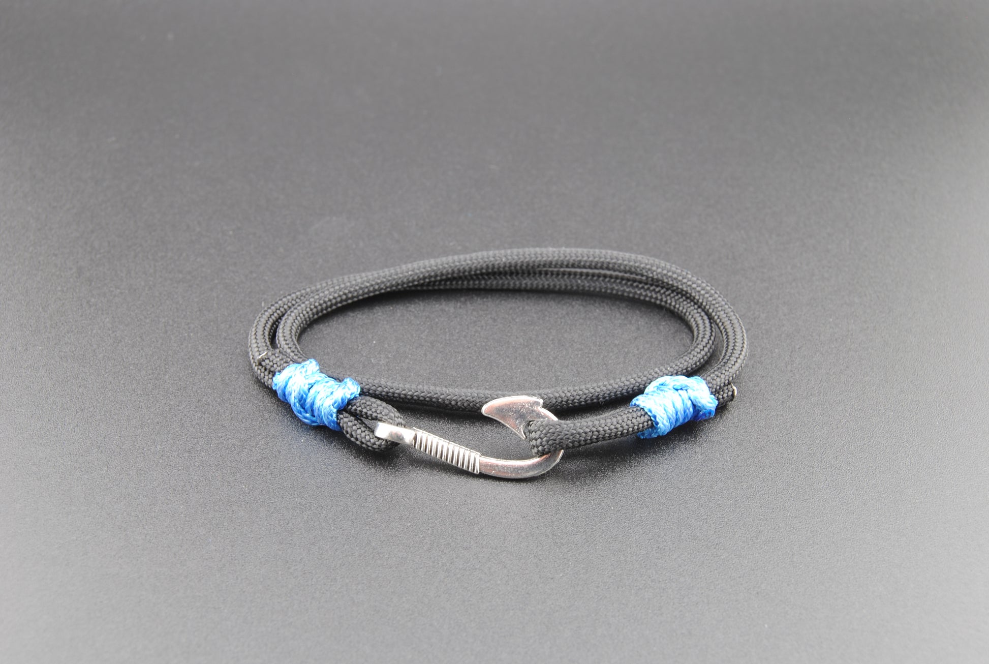 Black 550 Paracord double wrap Bracelet with Blue Whipping. Hook Closure.