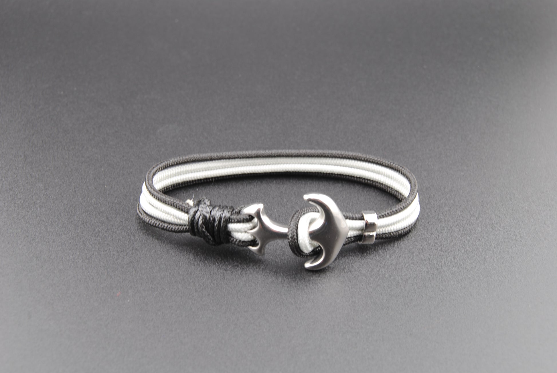 The Villain - Black and Silver Paracord Bracelet with Stainless Anchor Clasp