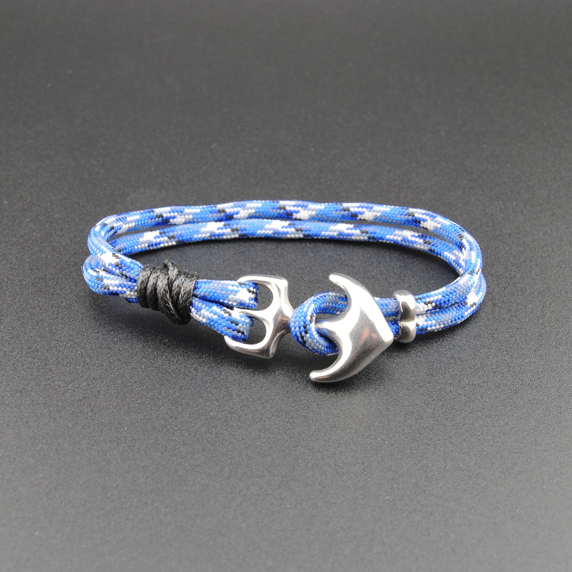 The Blue Camo - Blue w/ White/Black Paracord Bracelet with Stainless Anchor Clasp